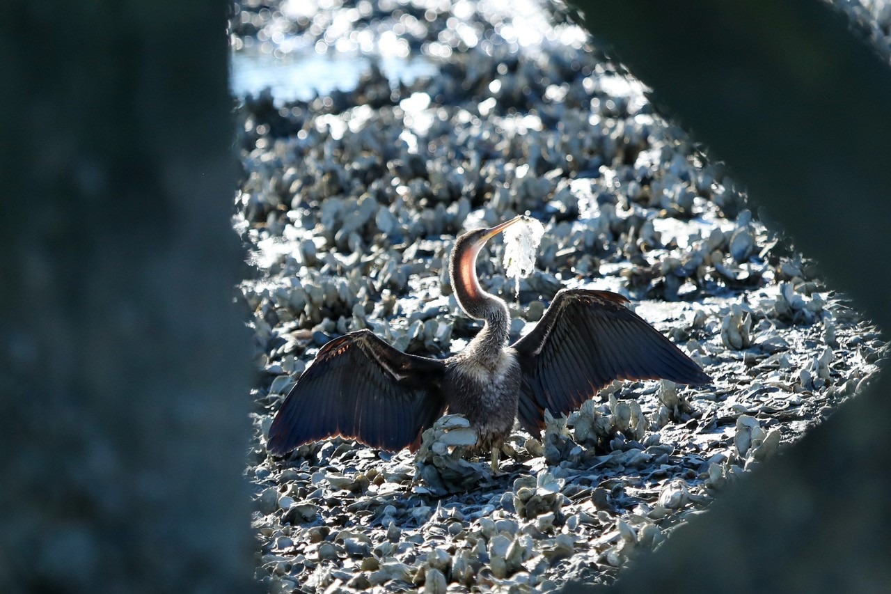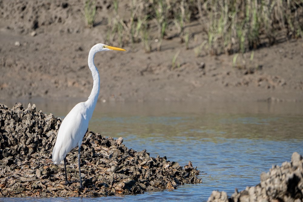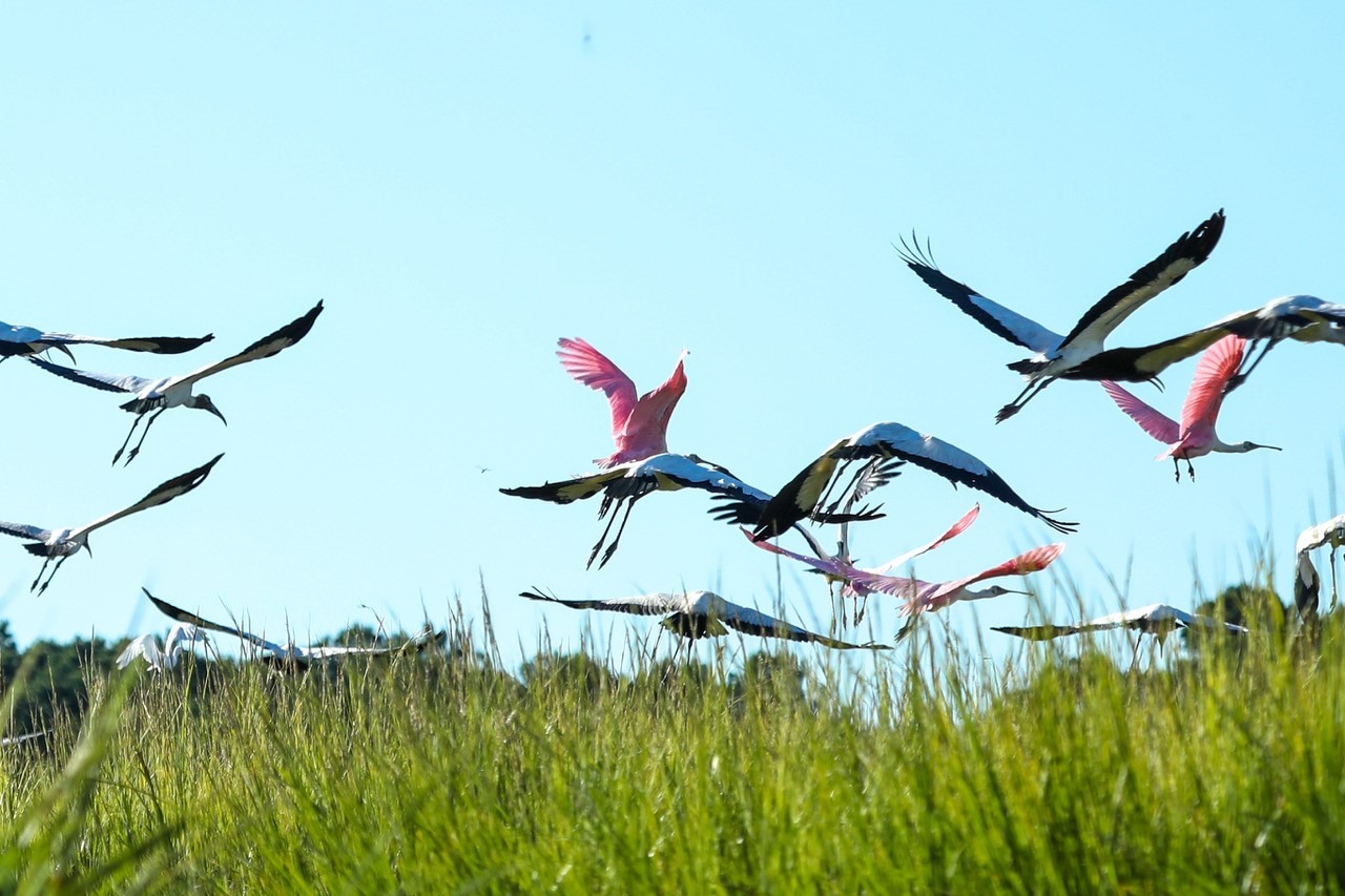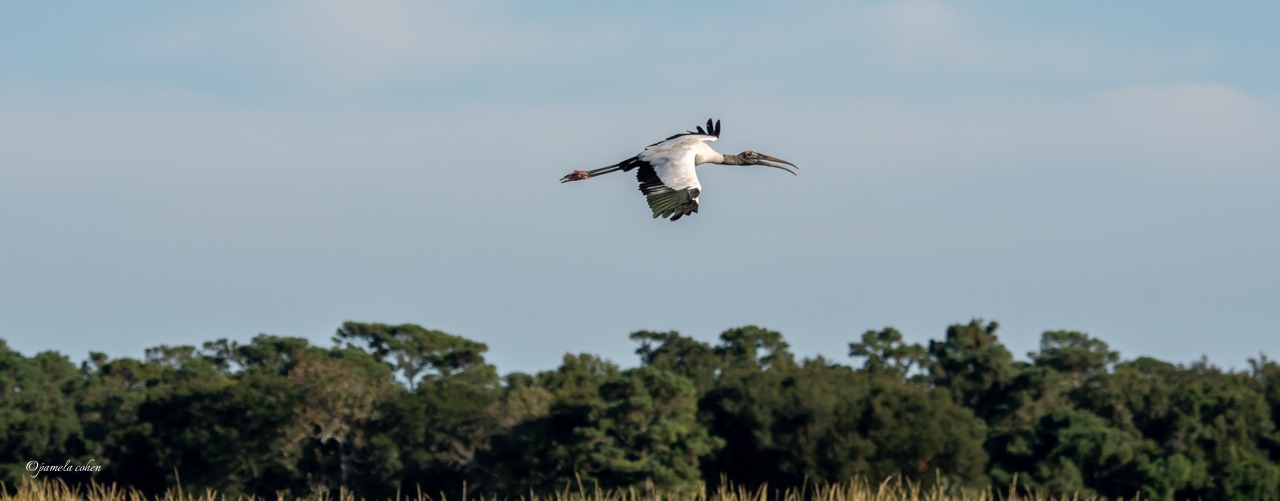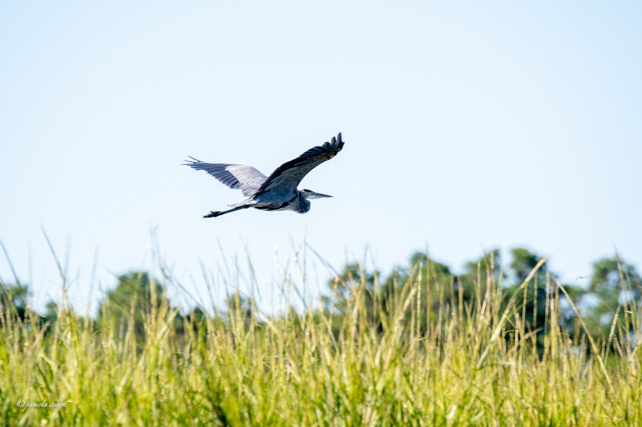 Participating club members were guided by Captain Brad Schmoll, who maneuvered the boat to the hotspots on the Kiawah River. We were all “armed” with photo gear in anticipation of documenting dolphin strand feeding, which according to Capt. Brad, had been vigorously occurring all week. We headed to Capt. Sam’s Spit where dolphins were splashing but not strand feeding. The experience had us highly motivated to photograph whatever compositions came our way. During the second half, we took a cruise to the mudflats. There, we were immersed into the quiet solitude of the marsh environment, and greeted by beautiful vistas as the low tide uncovered multiple oyster beds. A variety of large wading birds flying overhead in the bright cloudless sky tested our skills at flying bird photography. We headed back to the dock with memory cards full of images after a fun shoot with fellow club members.